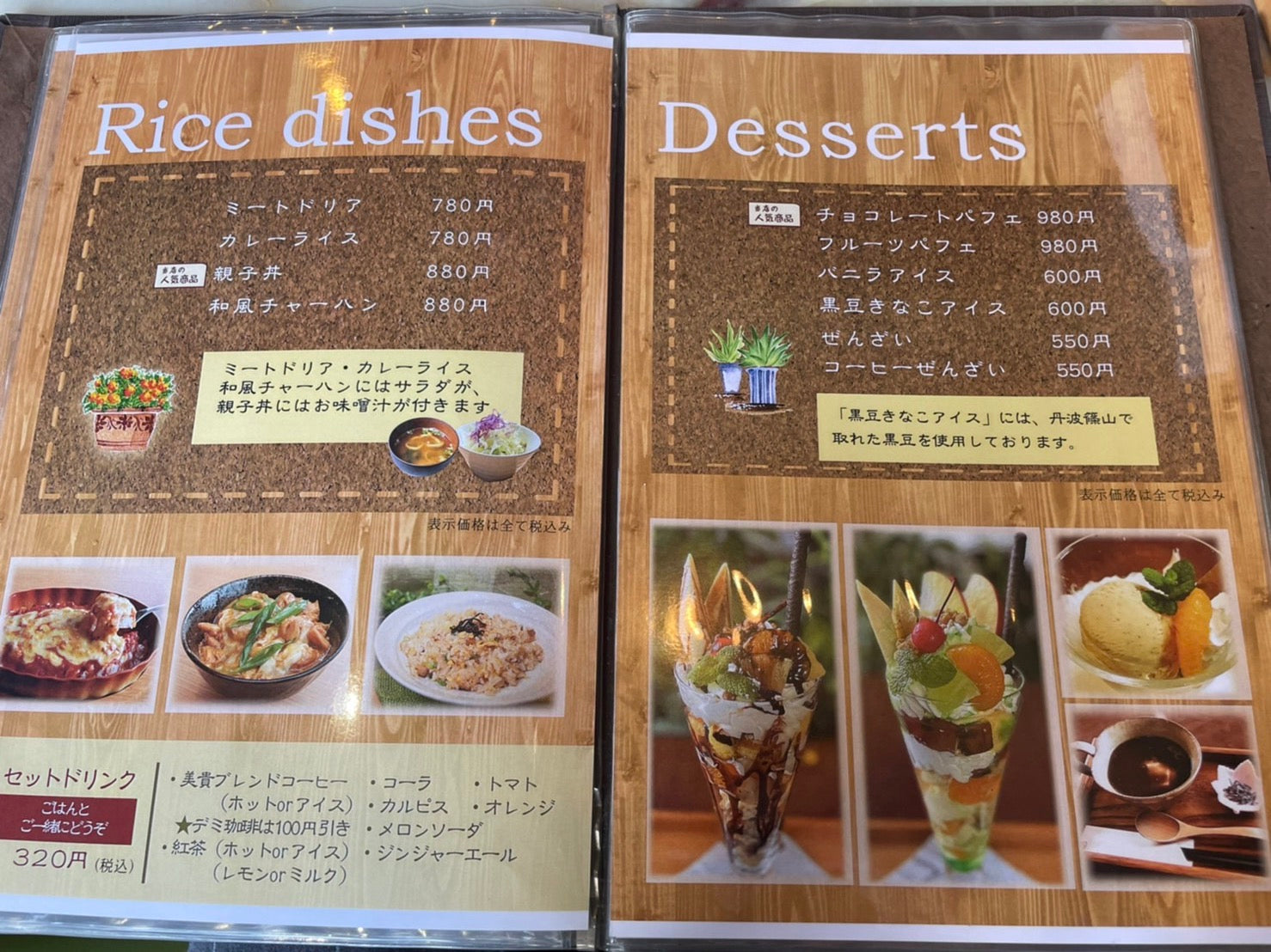 アーモンドミルクラテやパフェなど食後のデザートも揃っています。