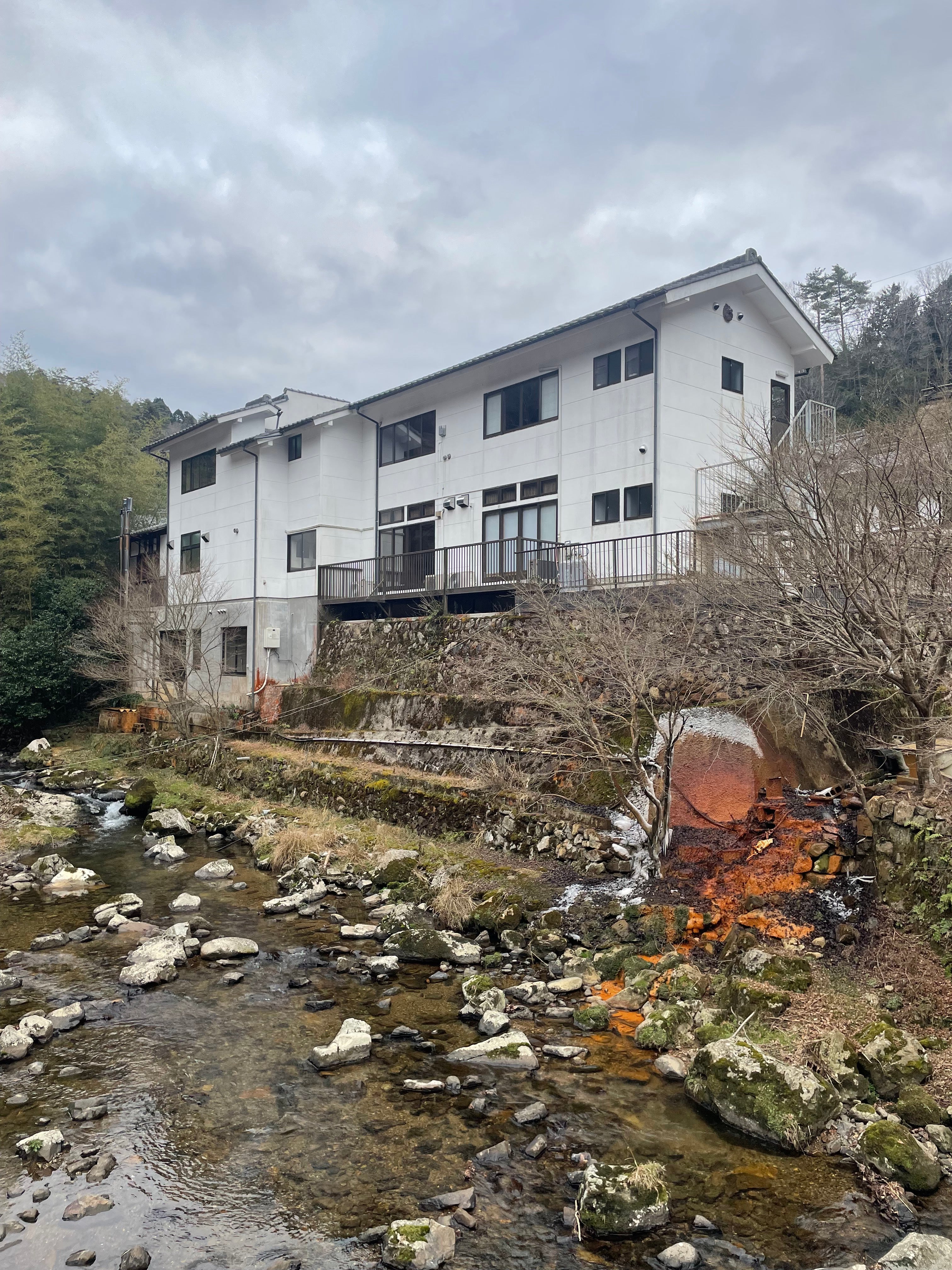 後川のかなり山奥まで行くと見えてくる籠坊温泉。