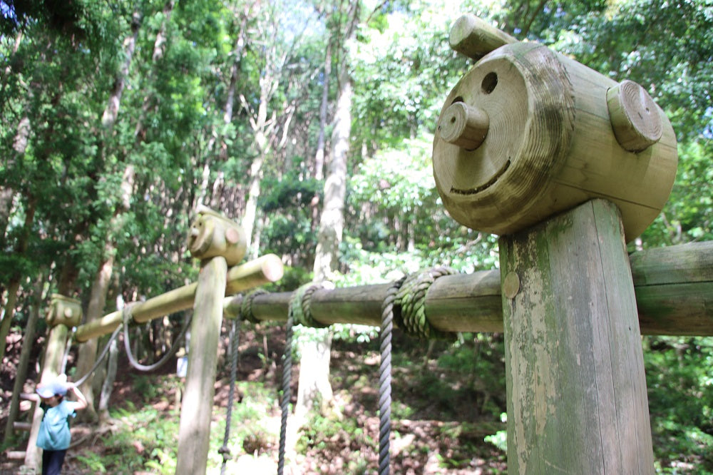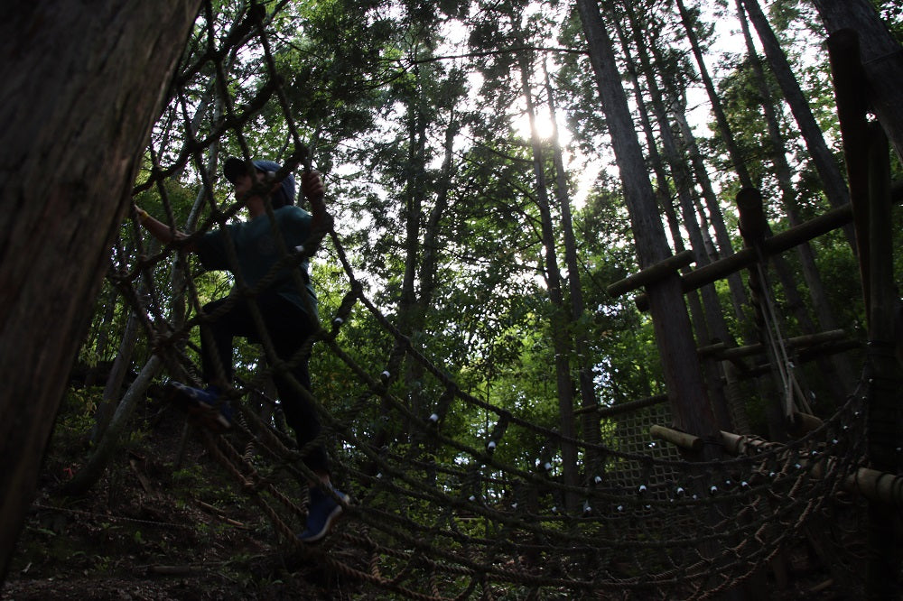 で、肝心のアスレチックは難易度高め(笑)基本的には丸太を進んだり、ロープを伝えっていくのですが、40歳にはかなりこたえます。ヒイヒイ言っている大人を横目に子どもたちがキャッキャと通り過ぎていきます。