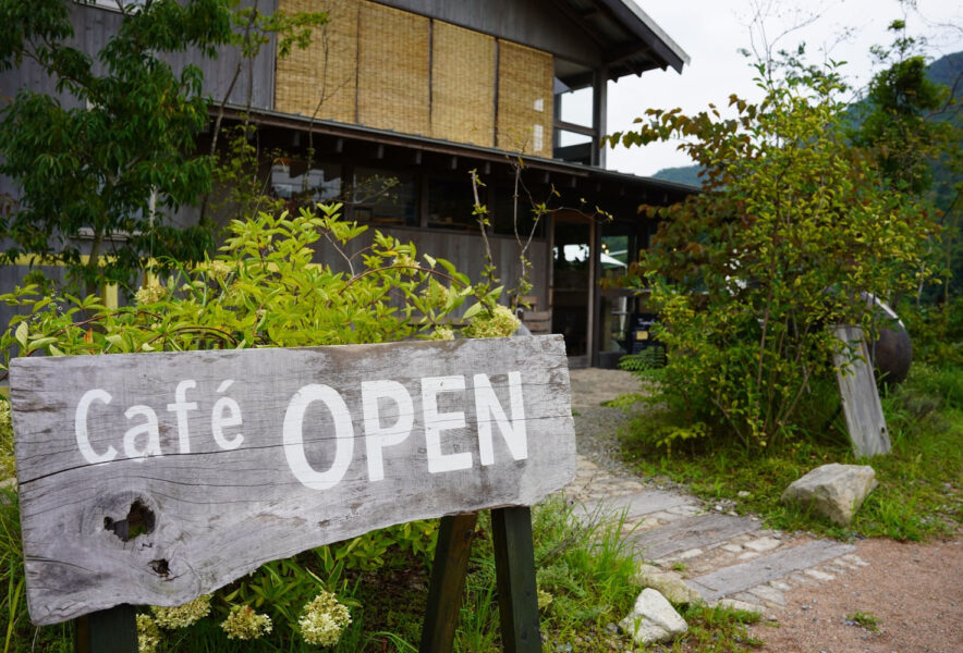 晴れた日は外でパラソルを開いて食べることもできます。柵の奥にはヤギもおり、食事の様子などを見ることができました。私が行ったときは生後1か月のヤギもいてとてもかわいかったです。自然を感じられるTouya cafe、ぜひ一度訪ねてみてください。
